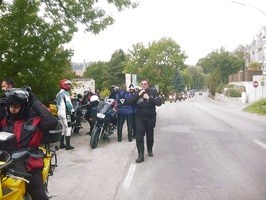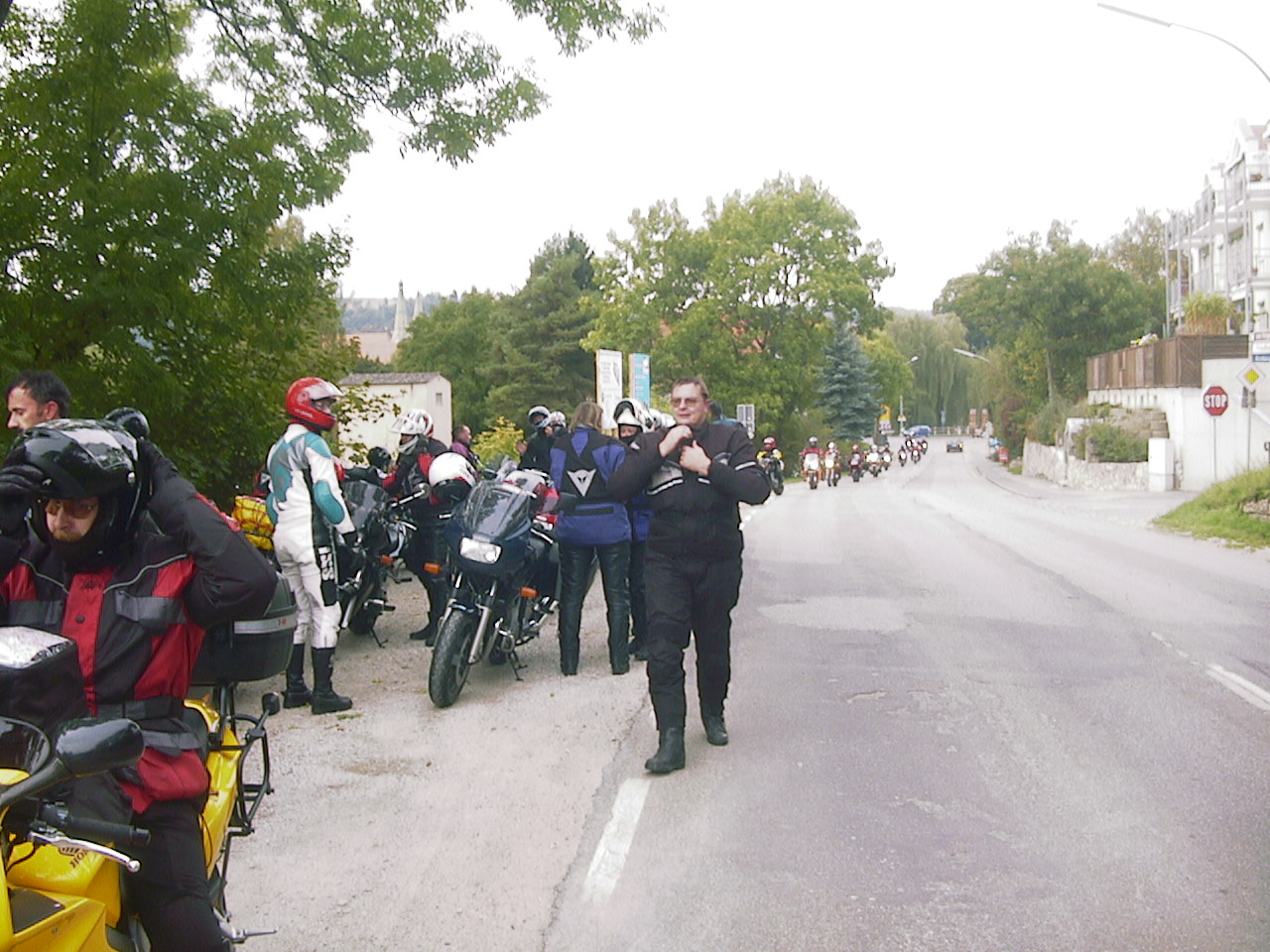 | Inzwischen hatte sich die Temperatur bei 20°C eingependelt und als wir weiterfahren wollten, hatte Helmut unfreiwillig ein Suchspiel organisiert.... alle suchten seine Schlüssel, die er verloren hatte. Aber dann ging es weiter über Pappenheim, Solnhofen, Mörnsheim, Dollnstein bis Eichstätt. |
