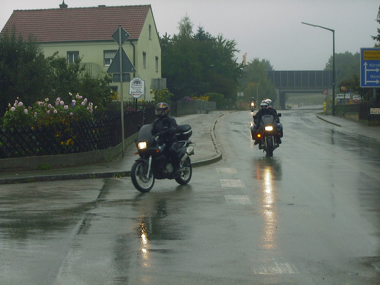 Auf dieser Strecke mussten wir mehrfach pausieren, da sich die Sozia von Gudrun den letzen Abend (Ramazotti) nochmals durch den Kopf gehen ließ und nachmessen musste, was sie so getrunken hatte. In Gunzenhausen standen dann Kerstin die | |