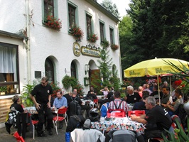 Mittagessen "Im Alten Forsthaus" . Danach von Braubach über Dachsenhausen - Dahlheim - St. Goarshausen - Bornich - Weisel - Ranzel - Lorch (links zur Wisper) Richtung Bad Schwalbach durch das Wispertal zur dortigen Laukenmühle wo wir eine Kaffeepause einlegten. |