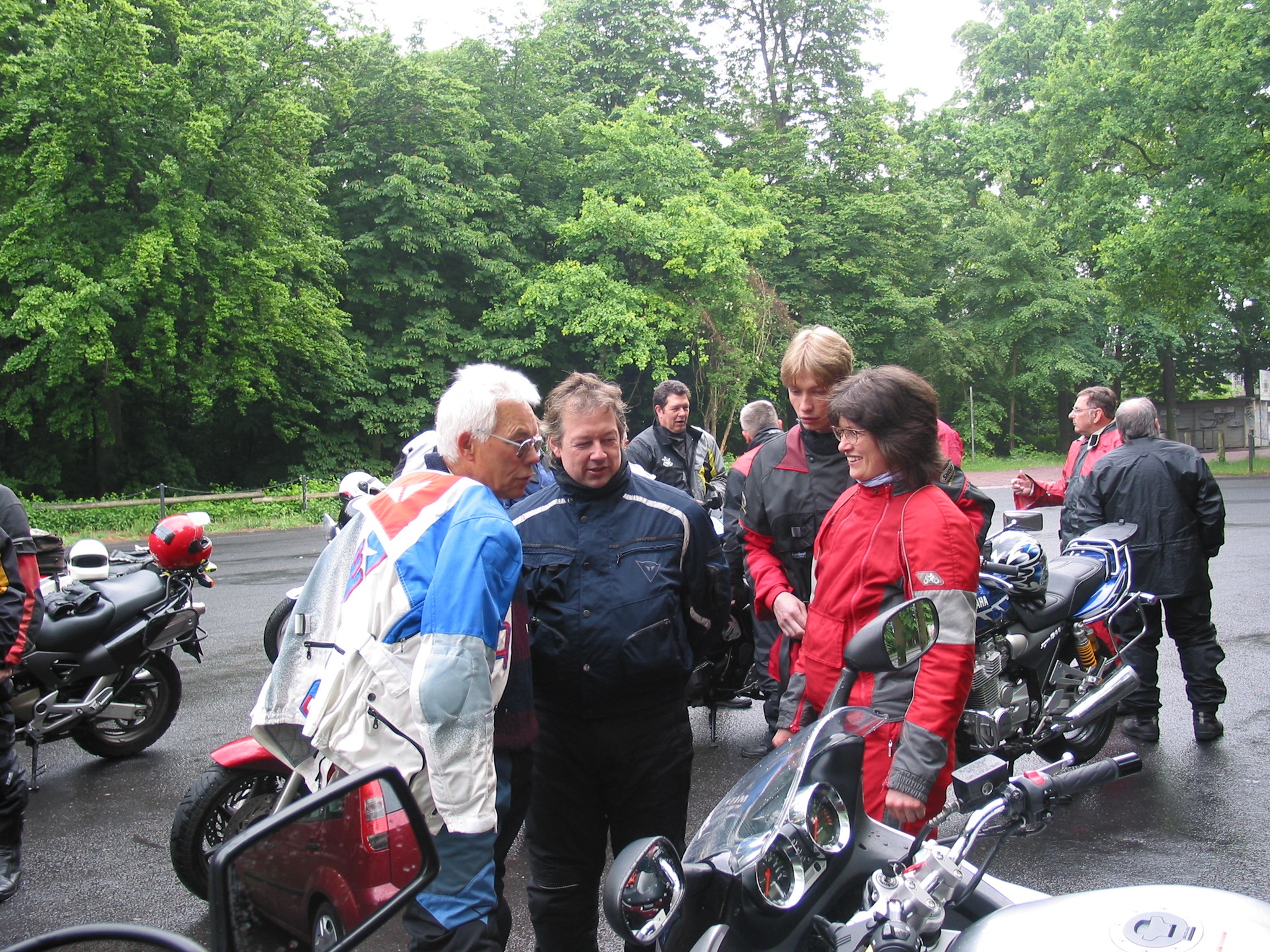 Trotzdem kamen ca. 20 Teilnehmer zum Treffpunkt und waren zuversichtlich, dass Petrus ein Nachsehen für Motorradbegeisterte hat.