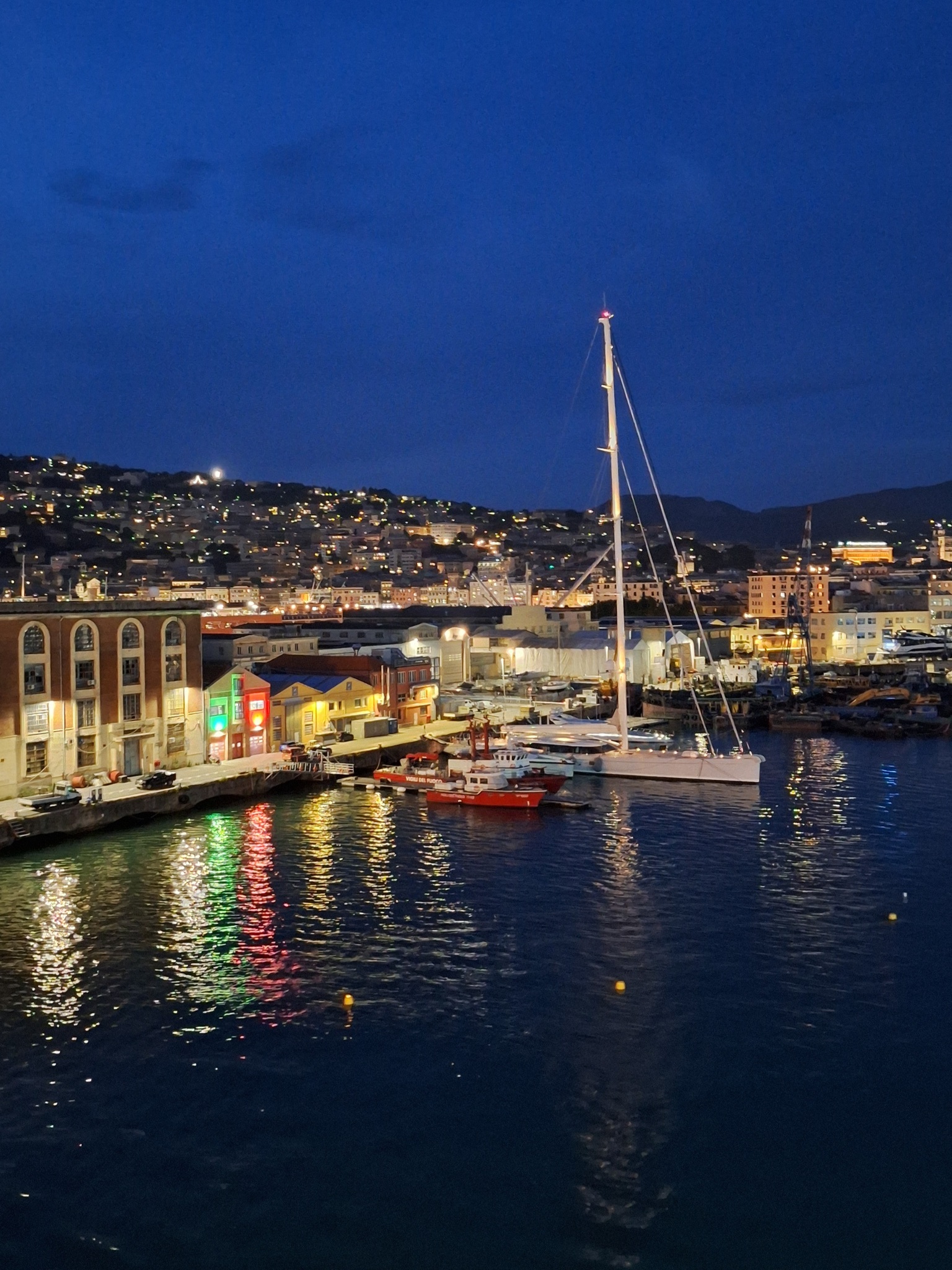 Am nächsten Morgen ging es dann Richtung Genua und der Fähre nach Sardinien weiter. Fredi und Hans hatten uns im Hotel erwartet und schlossen sich jetzt zur Weiterfahrt an. Wieder war Alex unser Tourguide. Die Tour führte uns über Österreich, Lichtenstein, Schweiz und Italien nach Genua. Auch hier hatte Alex einige schöne Strecken herausgesucht. Das Highlight war die Überquerung des Splügenpasses. Es handelt sich dabei um eine wunderschöne Pass-Straße. Nervig waren nur an einigen Stellen Autofahrer, die sich mit überdimensionalen Autos, manchmal sogar mit Anhängern oder Wohnmobilen, um die Spitzkehren kämpften. Pünktlich zum Einchecken kamen wir im Hafen von Genua an und konnten gleich mit den Motorrädern auf die Fähre fahren. Nachdem wir die Kajüte bezogen hatten, gingen wir auf dem Schiff auf Entdeckungstour. Um ca. 21.40 Uhr legte die Fähre dann ab und es ging auf den Seeweg weiter nach Sardinien.