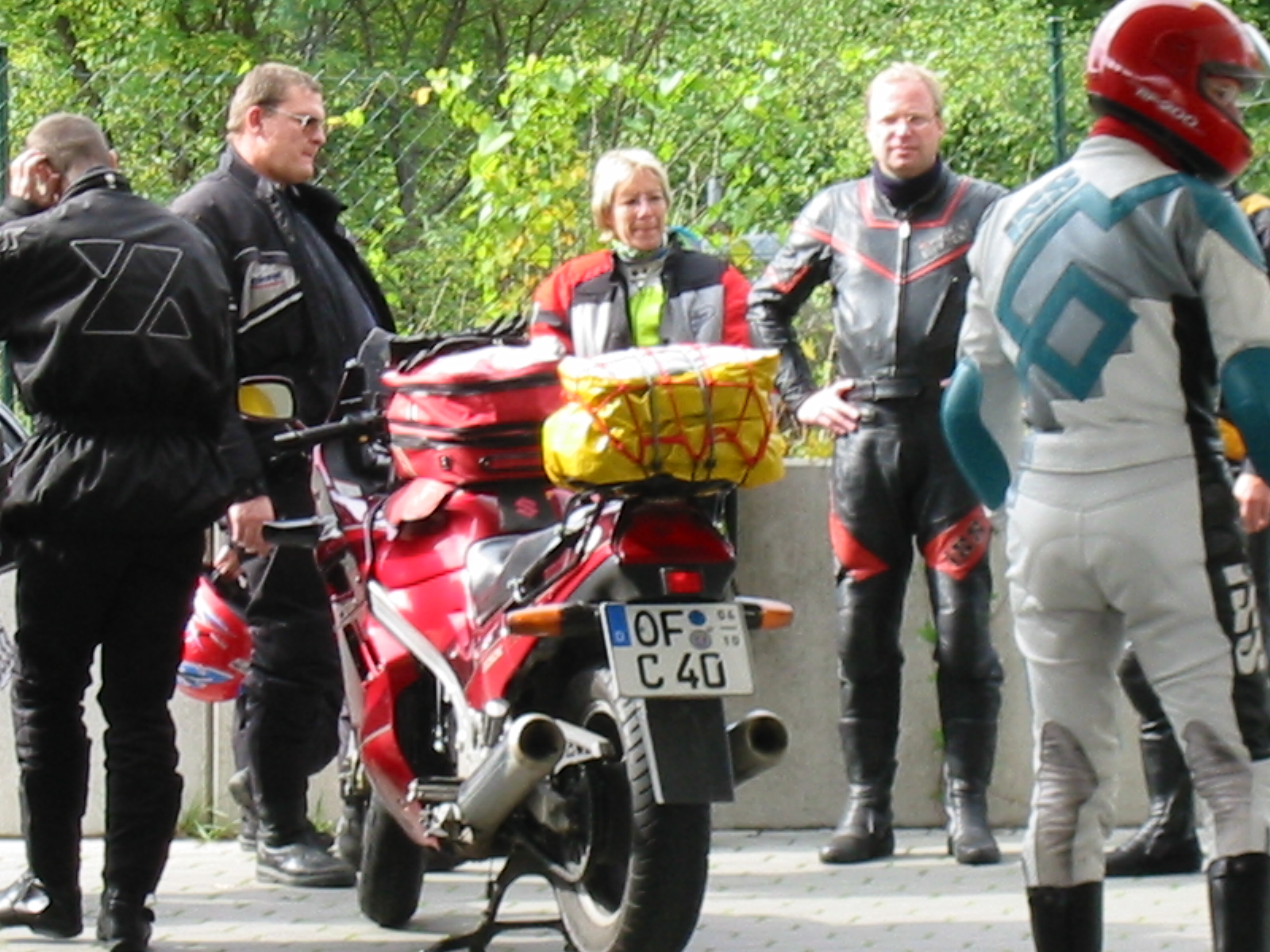 Auf dieser Strecke mussten wir mehrfach pausieren, da sich die Sozia von Gudrun den letzen Abend (Ramazotti) nochmals durch den Kopf gehen ließ und nachmessen musste, was sie so getrunken hatte. In Gunzenhausen standen dann Kerstin die | |