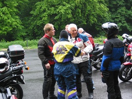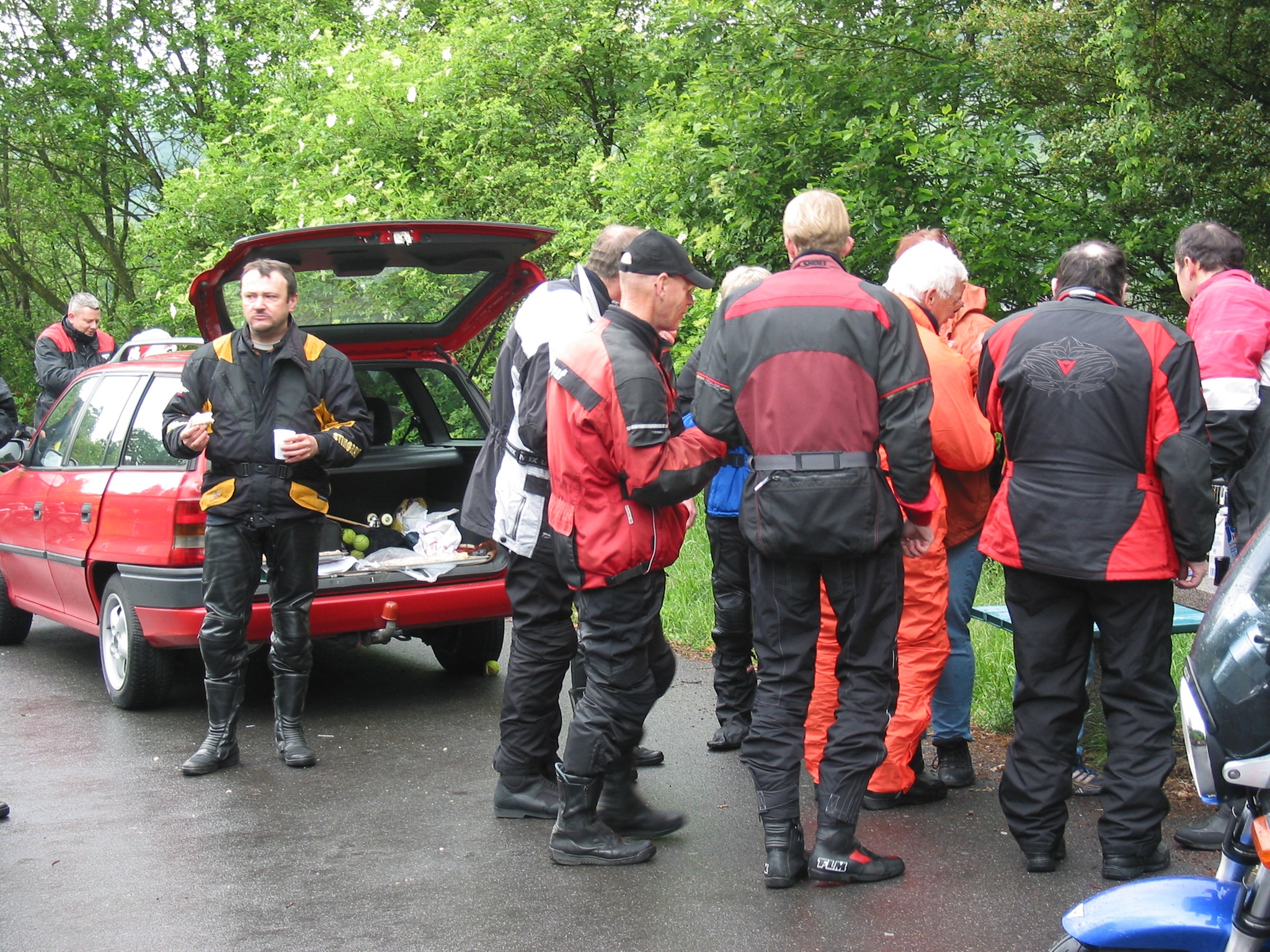 Trotzdem kamen ca. 20 Teilnehmer zum Treffpunkt und waren zuversichtlich, dass Petrus ein Nachsehen für Motorradbegeisterte hat.