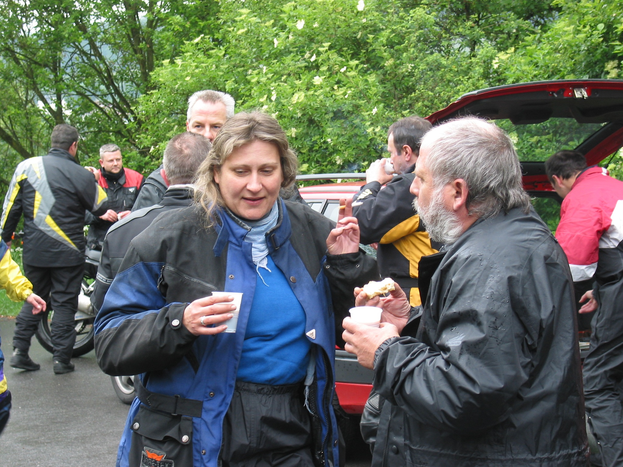 Auf einem Parkplatz wartete Uwe´s Schwester nebst Familie bereits auf uns. Es gab mal wieder den einzigartig guten und besten Streuselkuchen mit warmen Kaffee ....... und es war trocken - kein Regentropfen traute sich diese Pause zu stören.