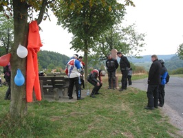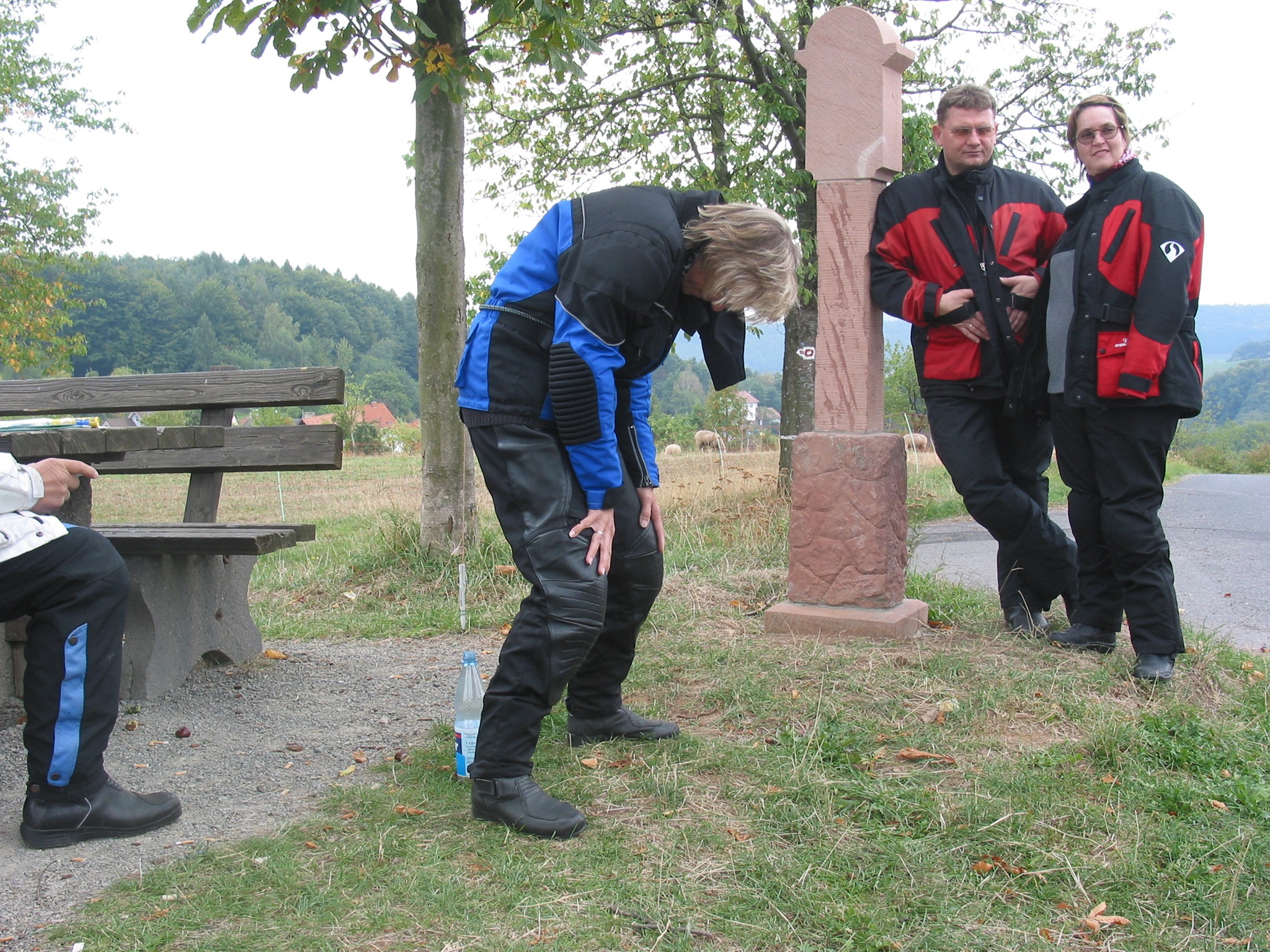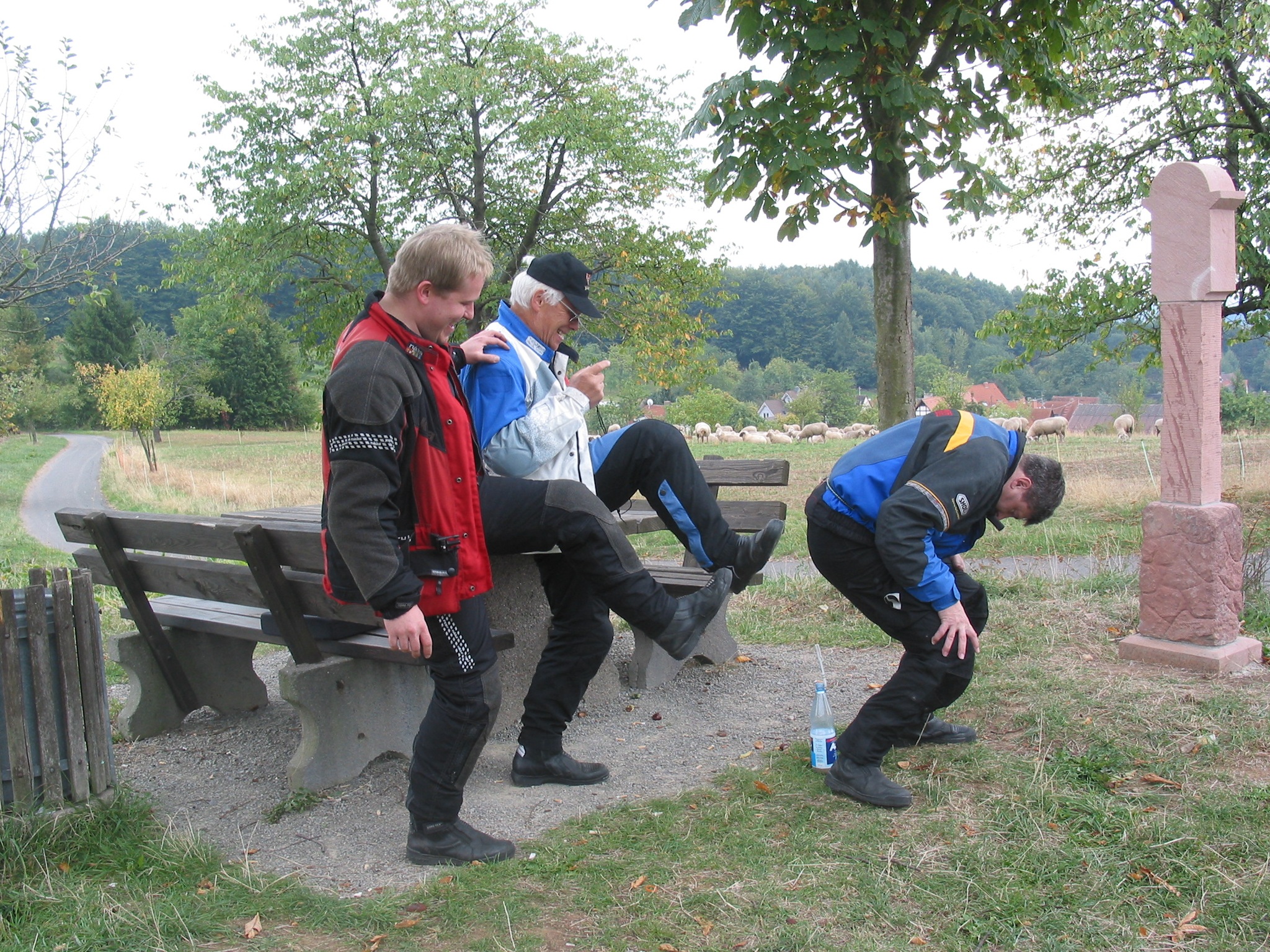 schon eine Zeit zurück und man wunderte sich, was da heute so alles für "dummes Zeug" gefragt wird. Diese drei Fragebogen zu beantworten brachte so manchen ins Schwitzen.Aber wir hatten alle viel zu lachen und es war ein schöner Tag. Nur zum Abschluss hatten wir noch eine kleine Panne, da Werner eine Schraube im Reifen hatte, welche wir entfernten und den Reifen flicken mussten.