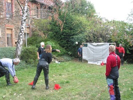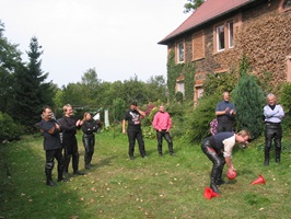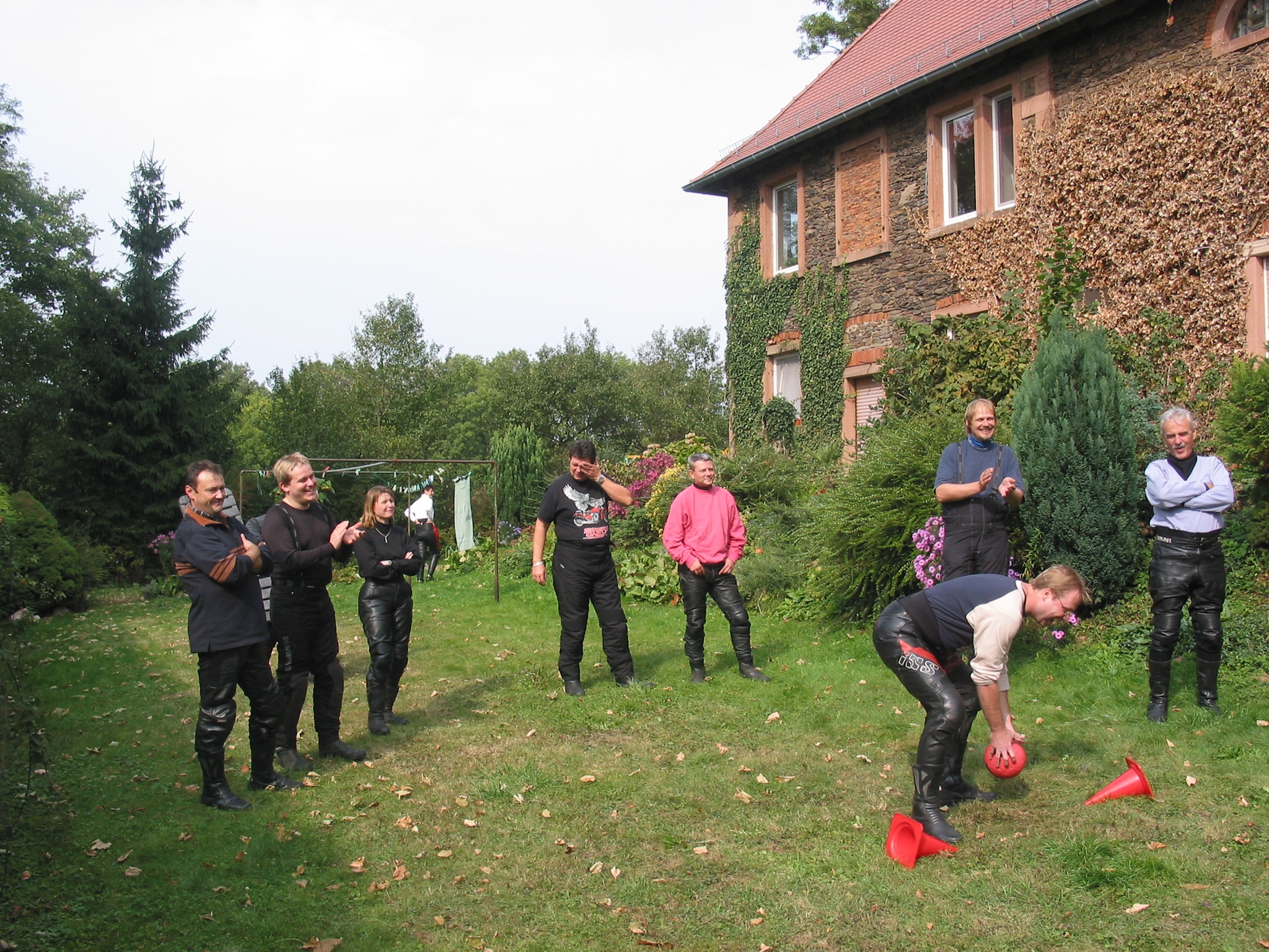 Nachdem jeder einen Geschicklichkeitslauf auf Zeit um Lübecker Hüte gemacht hatte und ausser Puste war, gab es noch eine Bremsübung zu bewältigen, wo das Hinterrad dann auf einem vorgegebenen Punkt zum Stehen kommen sollte.